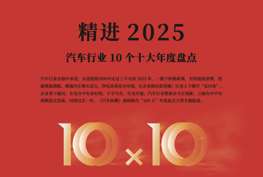 鉴往知今,驭势前行。《汽车纵横》重磅推出“封面故事”《精进2025——汽车行业10个十大年度盘点》大型专题报道。这是《汽车纵横》连续第6年重磅推出汽车行业“10个十大”年度盘点。
